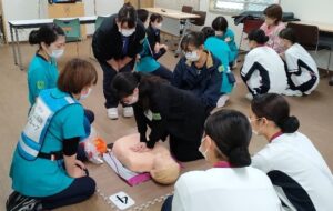 また、今回は、看護学実習に来ています別府溝部学園高等学校の3年生も参加しました。