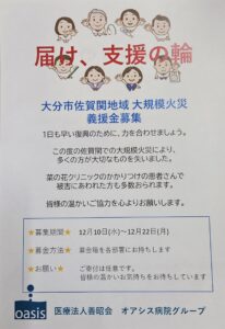 菜の花クリニックを中心として、当法人の職員全員を対象に義援金を募り、
