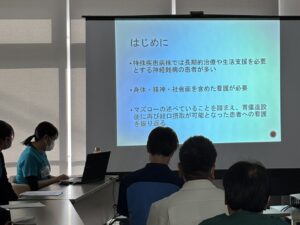 患者との関わりの中で学びや自身の担当した業務内容とその取り組みの成果などについて発表しました。